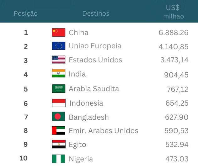 Principal destino comercial do agronegócio paulista, a China tem uma participação de 24% nas exportações, em geral. De acordo com os dados divulgados pelo Instituto de Economia Agrícola (IEA-APTA) da Secretaria de Agricultura e Abastecimento de São Paulo (SAA), em 2025, foram mais de US$ 6,8 bilhões nas transações financeiras, com um crescimento no valor que chega a 16,7%, em comparativo ao ano anterior.