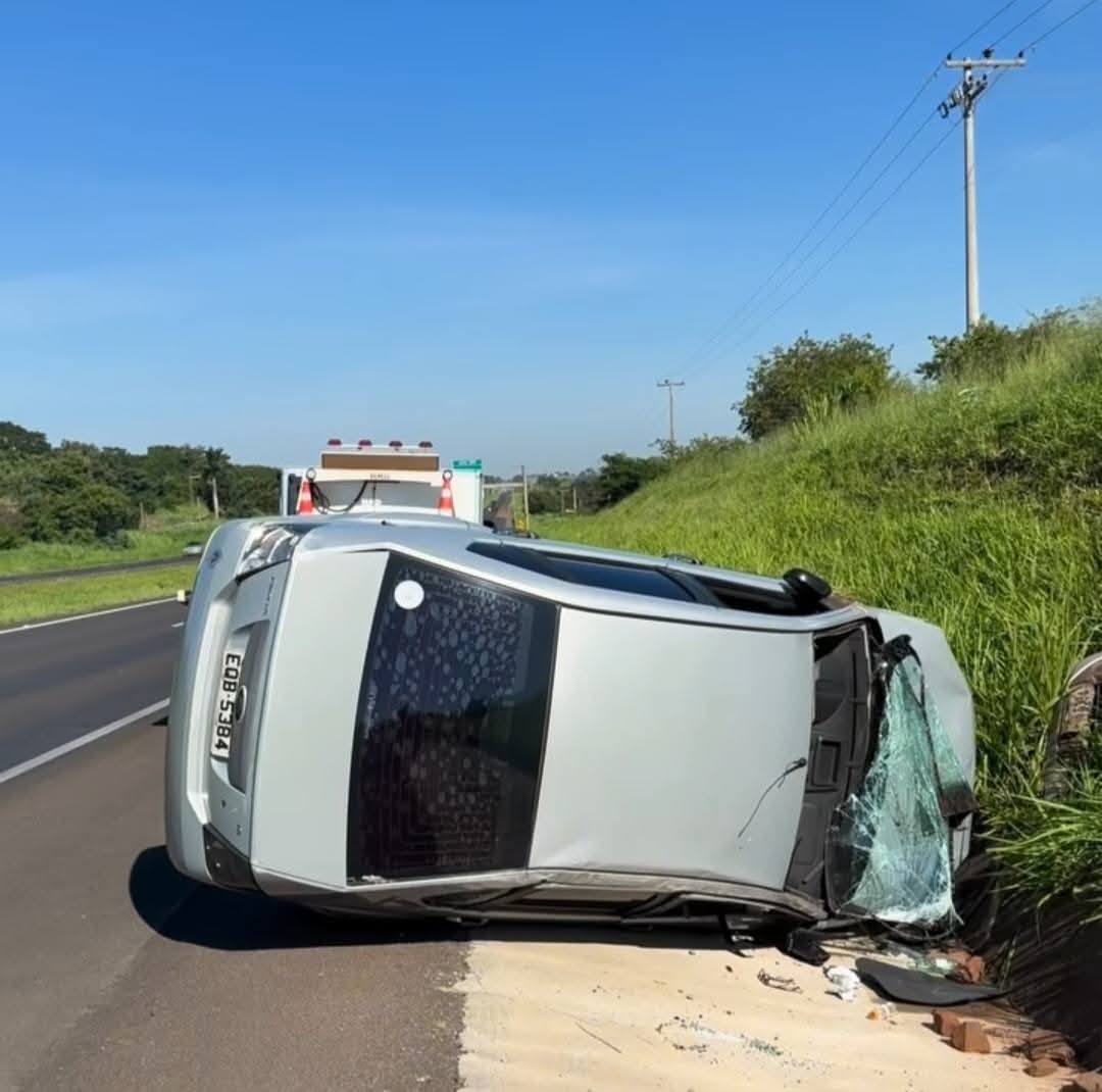 Carro capota na Rodovia Euclides da Cunha entre Jales e Santa Fé do Sul