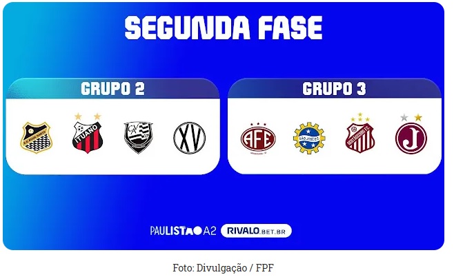 Na segunda fase do Paulistão A2, os oito classificados foram divididos em dois grupos com quatro equipes cada, que se enfrentarão em jogos de turno e returno.