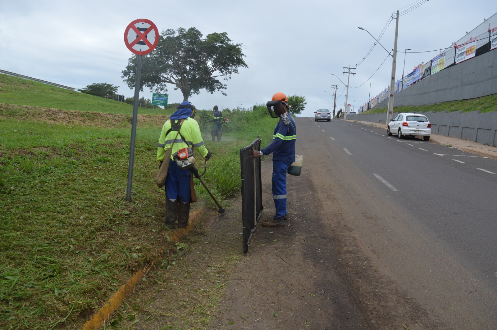 Outra frente de serviço está concentrada na Avenida Luiz Brambatti, marginal da Rodovia Euclides da Cunha. Devido ao intenso fluxo e à atividade comercial do local, a manutenção ocorre em ambos os lados da via.