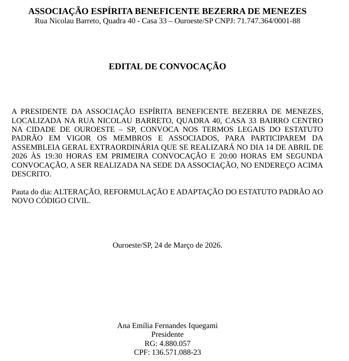 Atos Oficiais: Edital de Convocação Assembleia Geral Extraordinária
