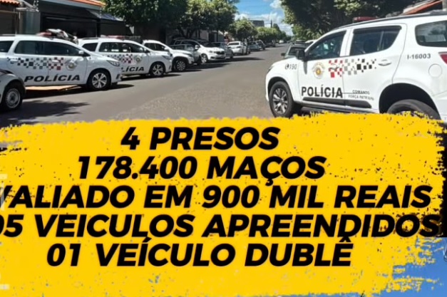 Uma operação da Polícia Militar resultou na apreensão de uma grande carga de cigarros contrabandeados e na prisão de quatro pessoas em Votuporanga. A ação ocorreu durante patrulhamento no bairro Parque das Nações e representou um duro golpe contra um esquema de distribuição ilegal na região.