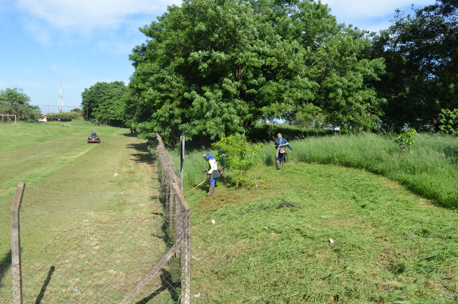 Além de um campo de futebol, existe uma extensa área verde entre as ruas Aldo Livorati, Sebastiana Silva e Avenida da Saudade. O trabalho nesse local precisa ser feito com roçadeiras manuais, o que requer mais tempo.
