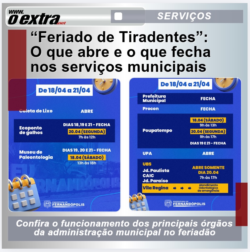 “Feriado de Tiradentes”: O que abre e o que fecha nos serviços municipais