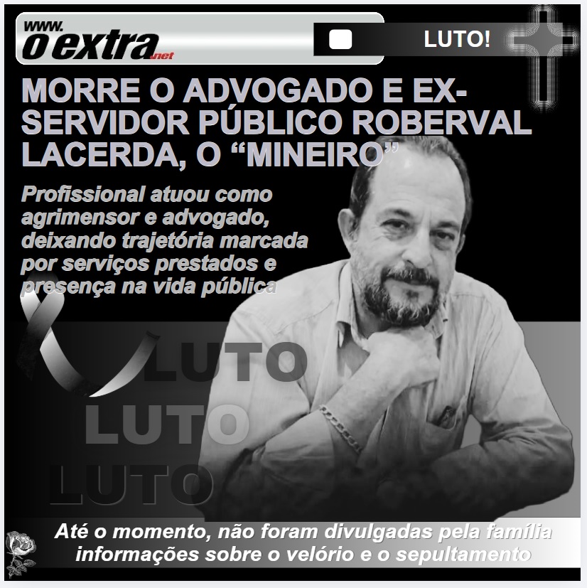 Morreu na madrugada deste domingo (26) o advogado e ex-servidor público Roberval Jesus Lacerda, conhecido popularmente em Fernandópolis como “Mineiro”.
