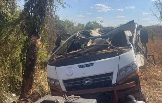 Micro-ônibus com trabalhadores rurais capota em Iturama