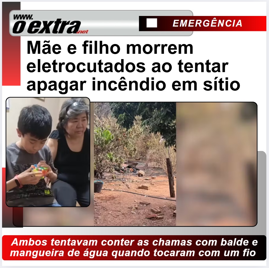 Mãe e filho morrem eletrocutados ao tentar apagar incêndio em sítio