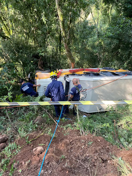 Veículo tombou na Estrada da Lageana, no ‘pé’ da Cascata do Caracol