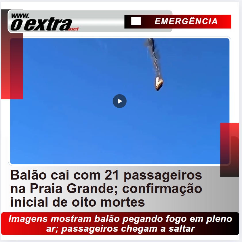 Balão cai com 21 passageiros na Praia Grande; confirmação de 8 mortes