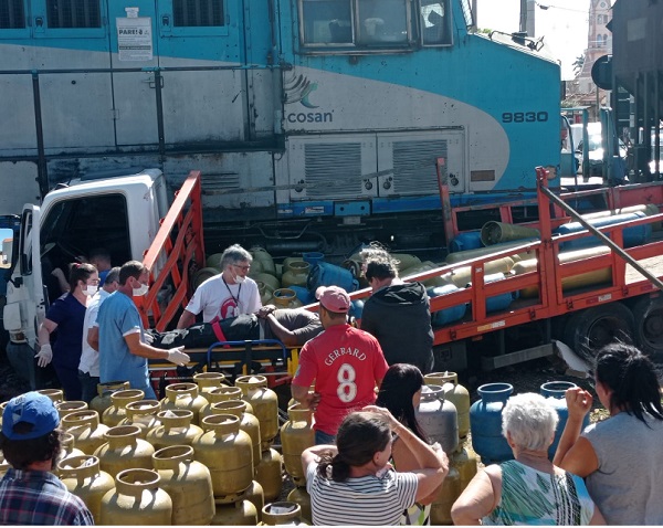 Trem atinge caminhão carregado de botijões de gás em Bálsamo