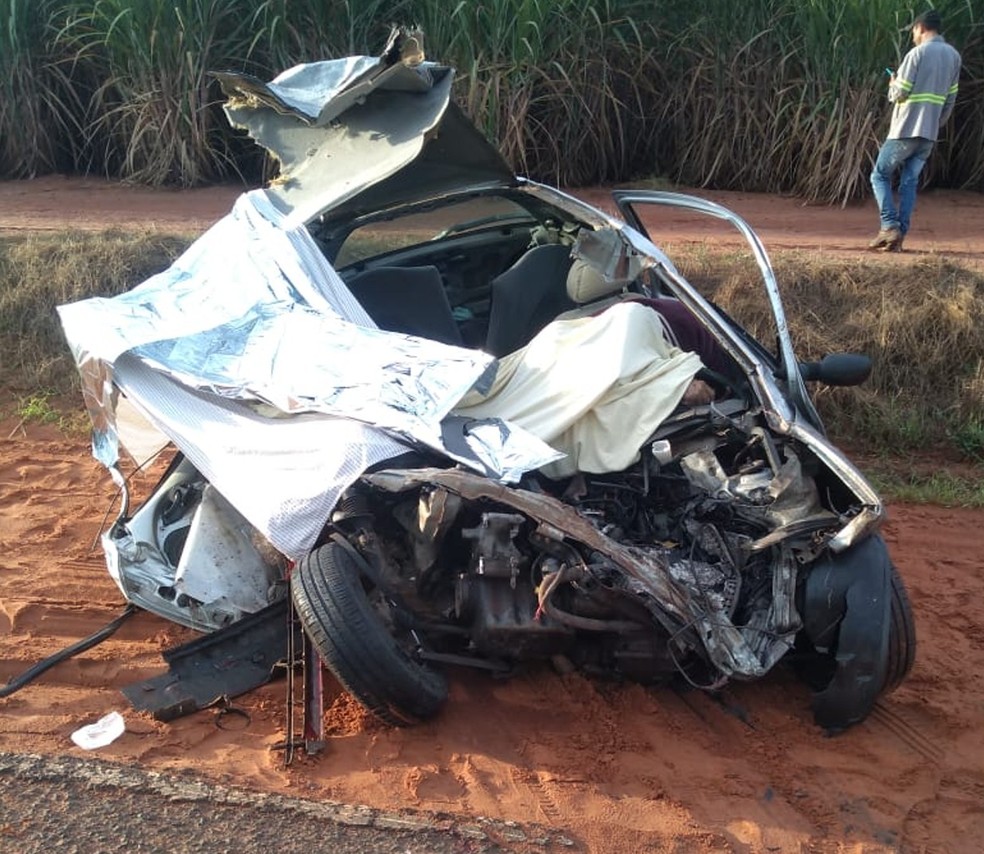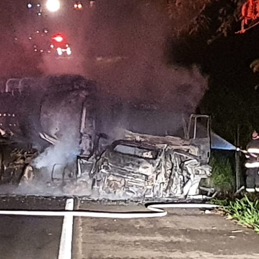 O motorista do carro ficou preso nas ferragens e morreu carbonizado no local