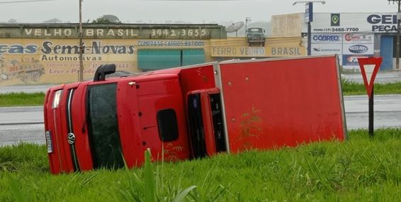 Caminhoneiro perde controle da direção e tomba veículo na rodovia