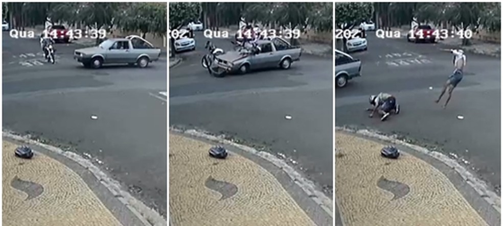 Piloto e garupa foram lançados do veículo e caíram no asfalto