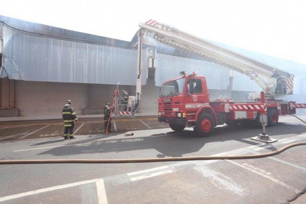 Local onde funciona o Shopping Azul foi atingido por um incêndio