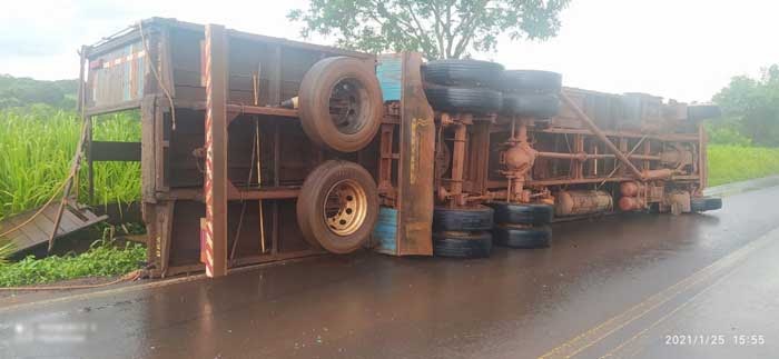 Grave acidente com caminhão é registrado em trevo da Euclides da Cunha