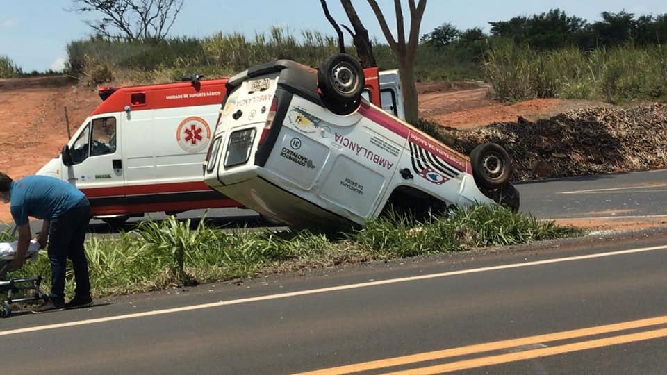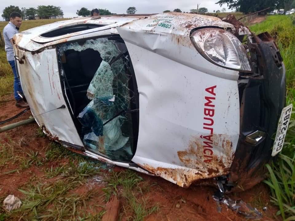 Motorista perde o controle de ambulância e capota em estrada vicinal