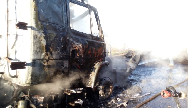 Caminhão de cana tomba e pega fogo em rodovia da região