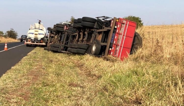 Vítima tombou caminhão no acostamento da pista e mobilizou bombeiros