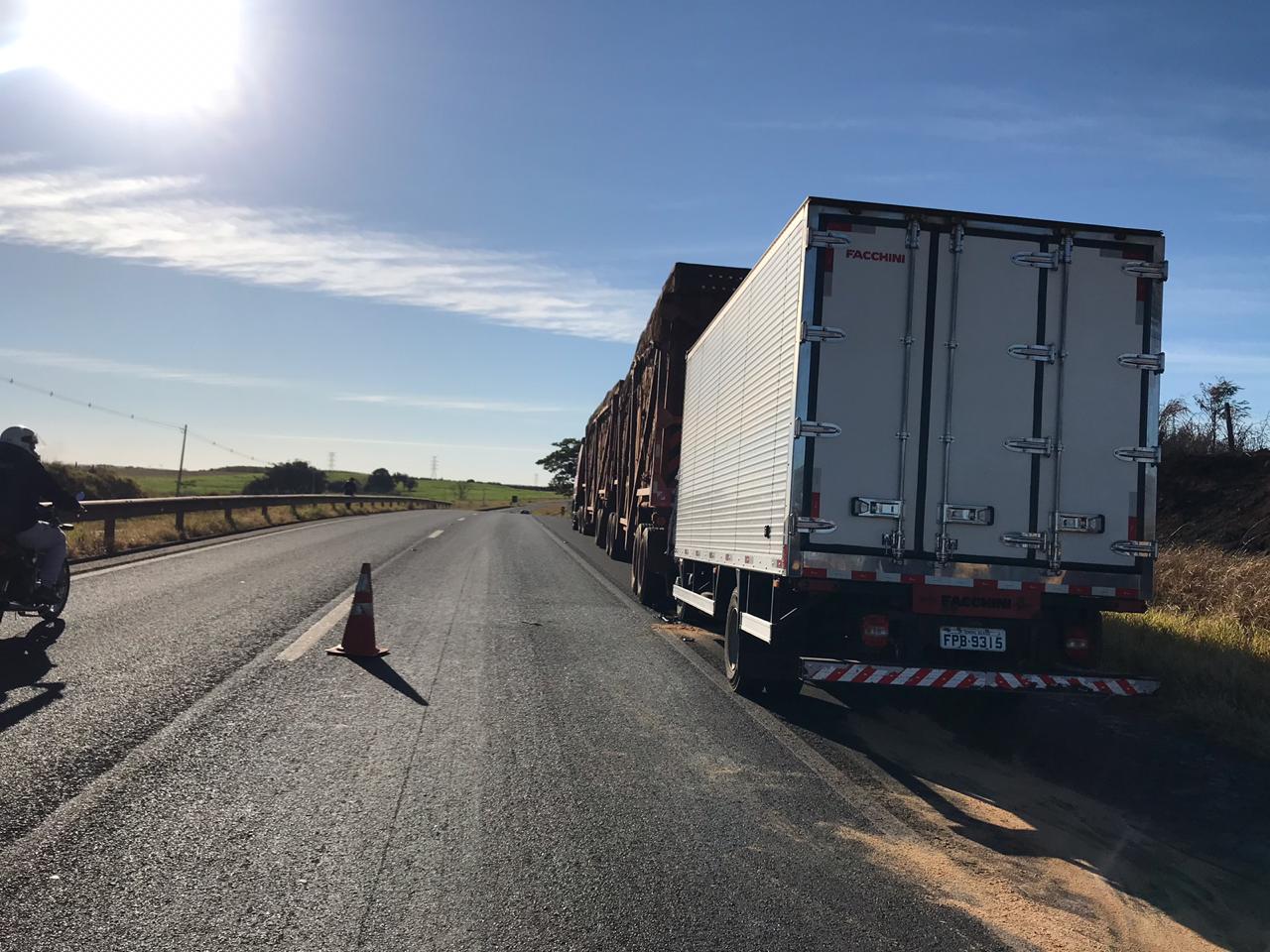 Colisão traseira entre caminhões deixa motorista ferido na SP-320