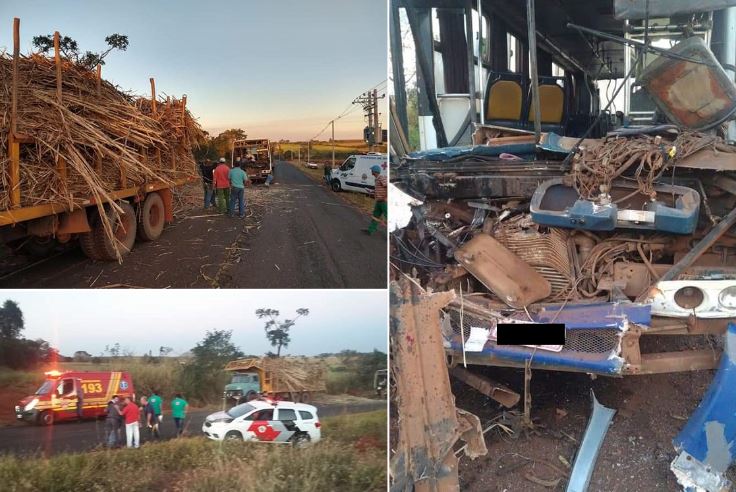 Ônibus levando trabalhadores rurais bate em traseira de canavieiro