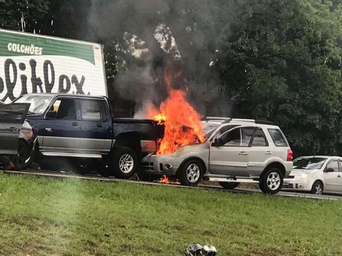 Carro pega fogo em engavetamento na Washington Luís