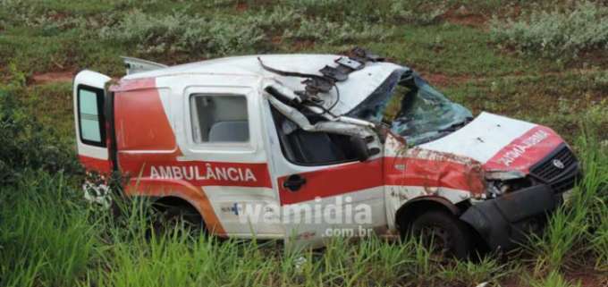 Motorista e pacientes ficam feridos após ambulância capotar