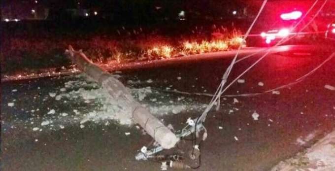 Motorista perde controle do carro e bate em poste de energia, que acabou caindo