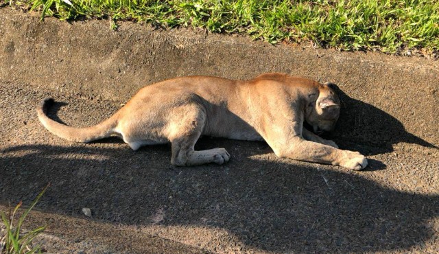Onça é atropelada por motociclista em rodovia da região