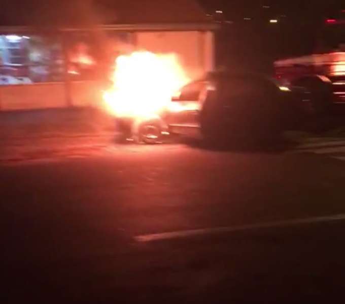 Carro pega fogo perto de posto de combustíveis e mobiliza bombeiros