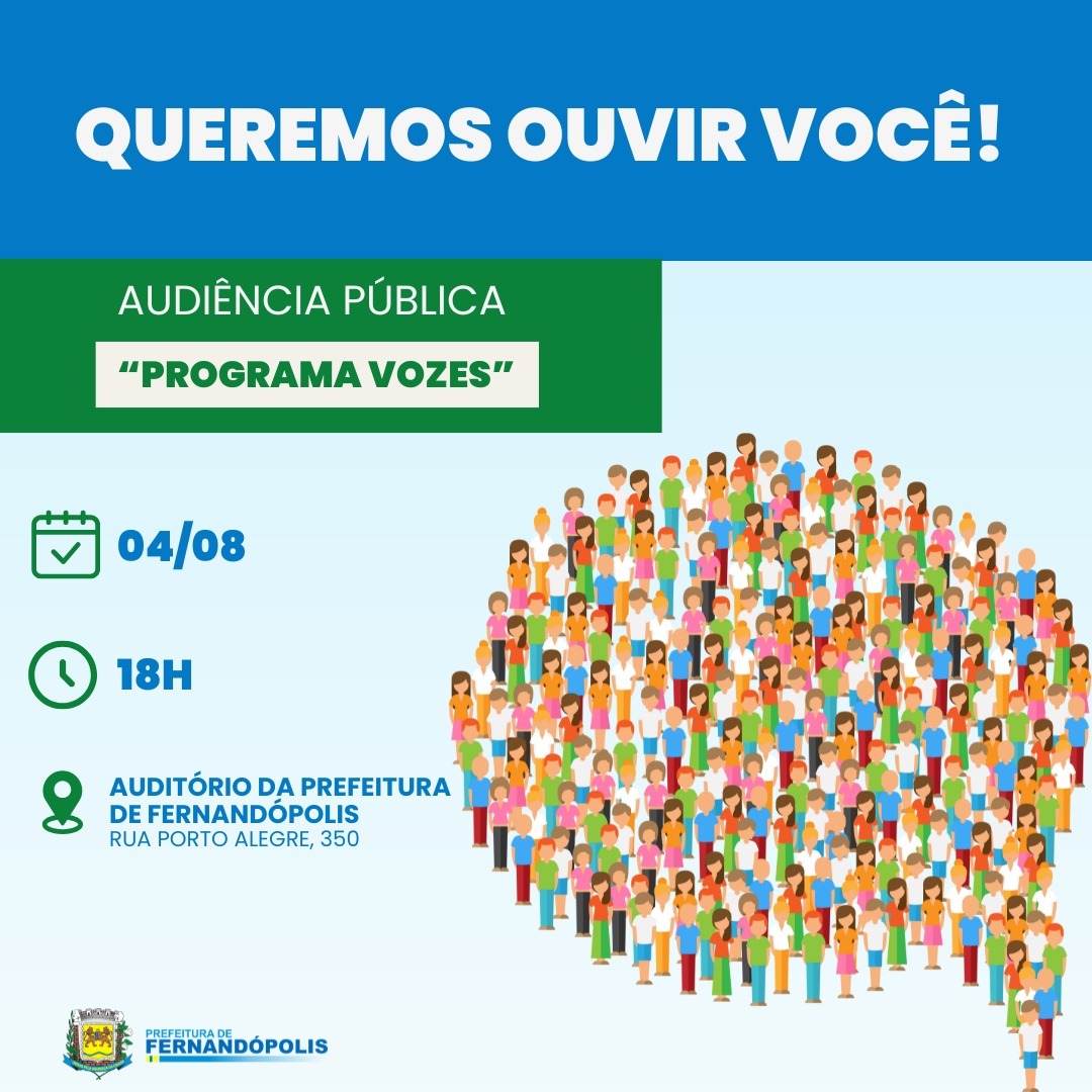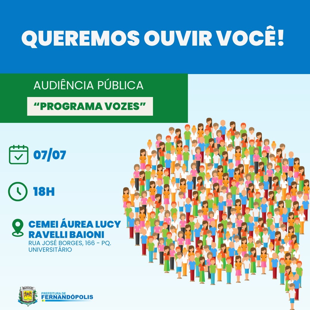 “Programa Vozes”: audiência pública hoje, 07, na zona sul da cidade