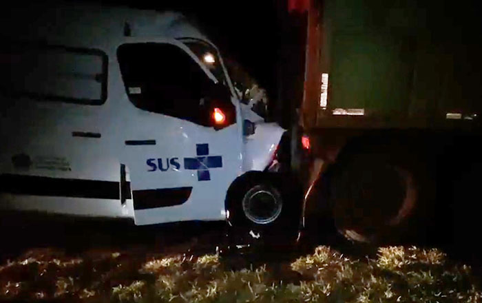 Ambulância com dois pacientes se envolve em acidente com caminhão
