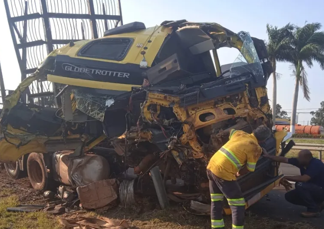 Caminhoneiro sai ileso após caminhão ficar destruído em acidente