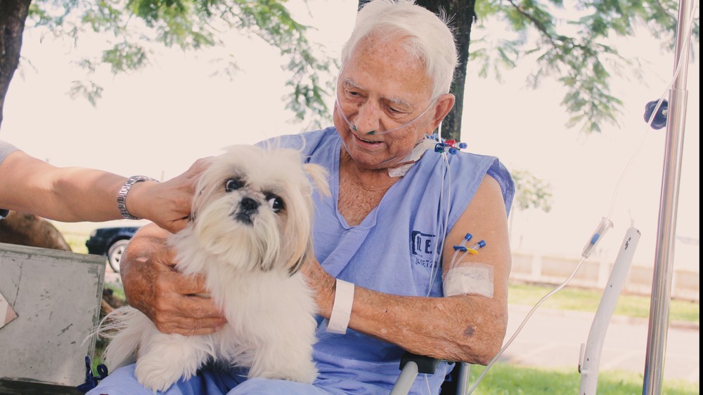 Idoso internado se emociona ao receber visita de animal de estimação