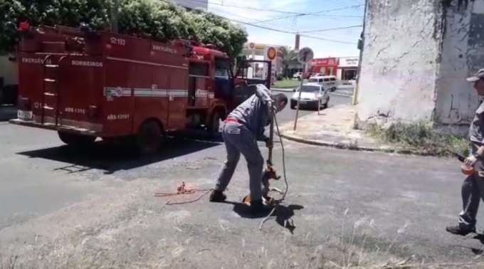Cachorro é resgatado de buraco no meio da rua