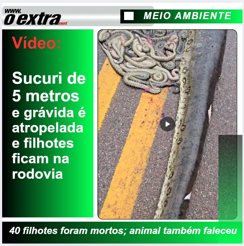 Vídeo: sucuri grávida de 5 metros é atropelada; filhotes na rodovia