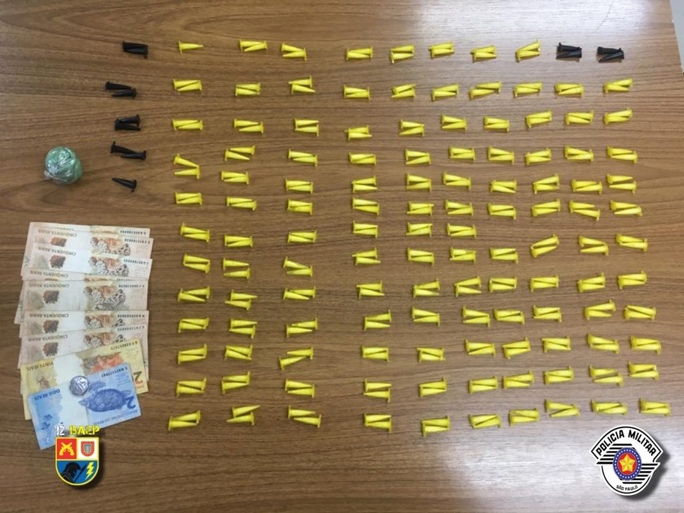 Polícia apreendeu porções de cocaína, maconha, pinos vazios e dinheiro