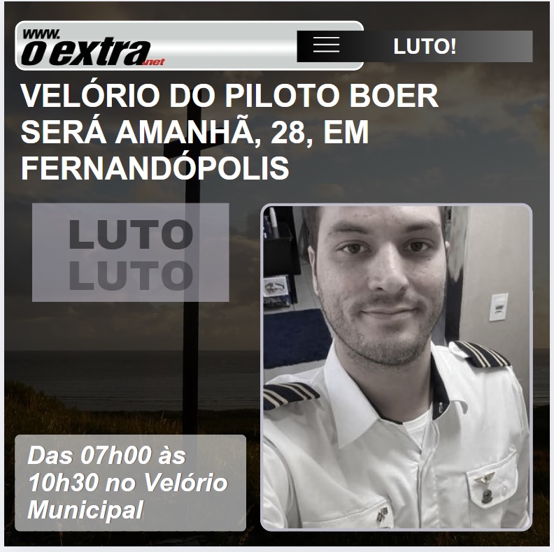 Velório do piloto Boer será amanhã, 28, em Fernandópolis
