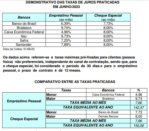 BB tem o menor juro no cheque especial e Caixa no empréstimo pessoal