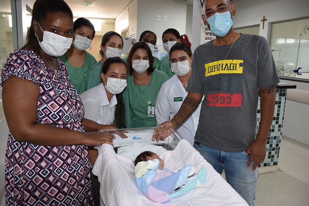 Bebê que nasceu prematuro porque mãe teve Covid recebe alta