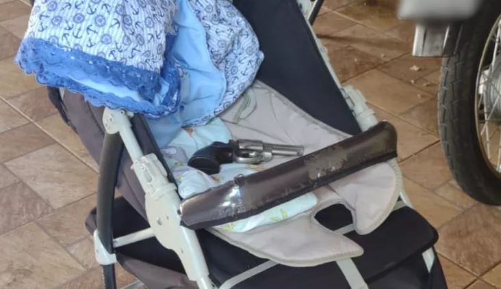 Homem é preso após esconder arma engatilhada embaixo de bebê