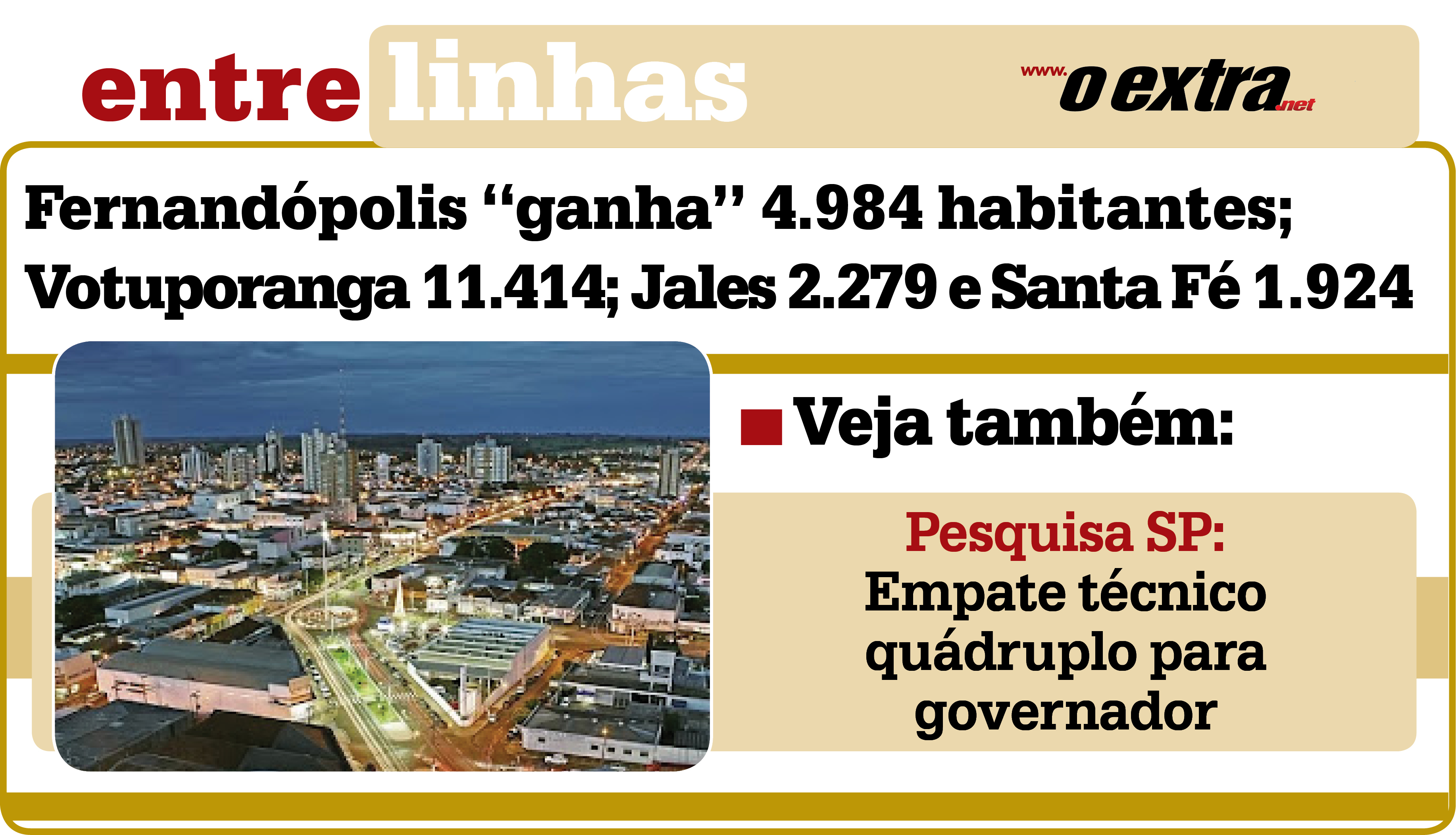 Fernandópolis ganha 4.984 habitantes; Votuporanga 11.414 e Jales 2.279