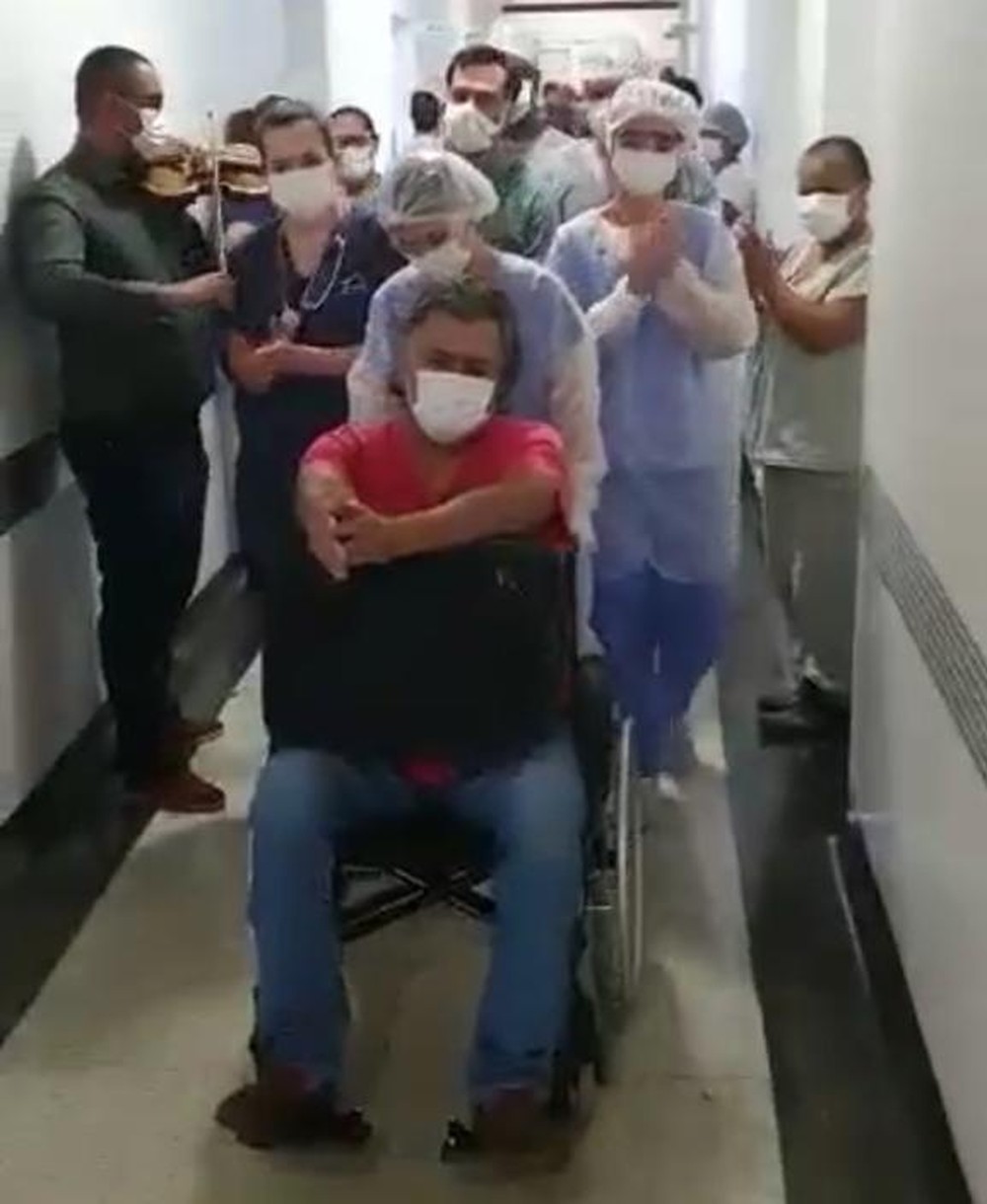 Ao som de violino e aplausos,médico recebe alta após ficar internado