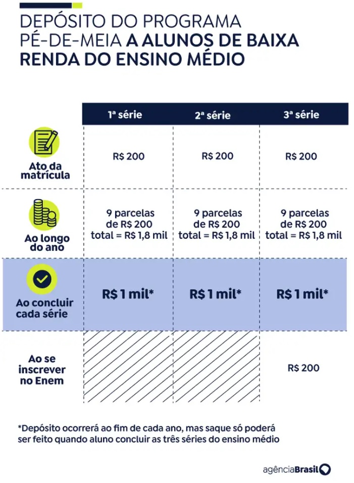 Nova parcela do Pé-de-Meia começa a ser paga nesta segunda, 29
