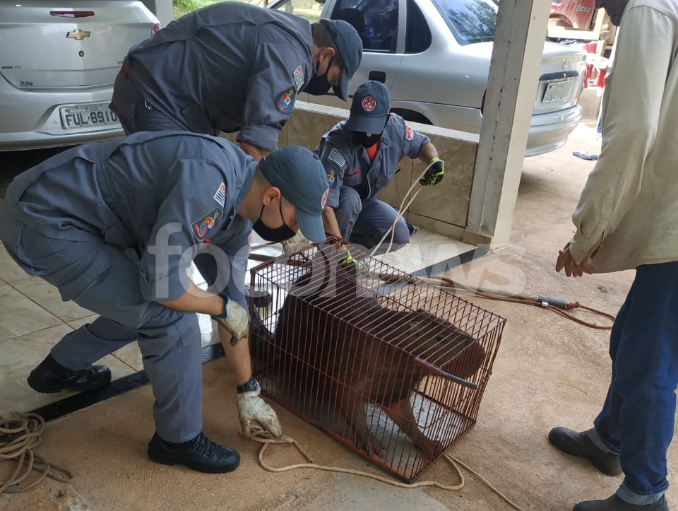 O animal foi capturado pelos bombeiros e devolvido à natureza. Ninguém se feriu
