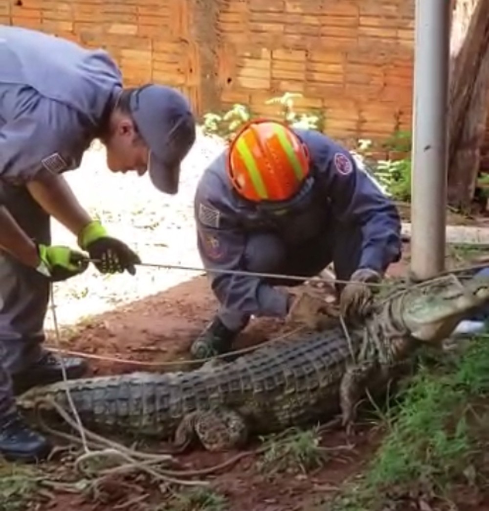 Bombeiros capturam jacaré com mais de 2 metros de comprimento