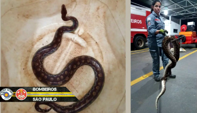 Bombeiros capturam serpente na via pública em Fernandópolis
