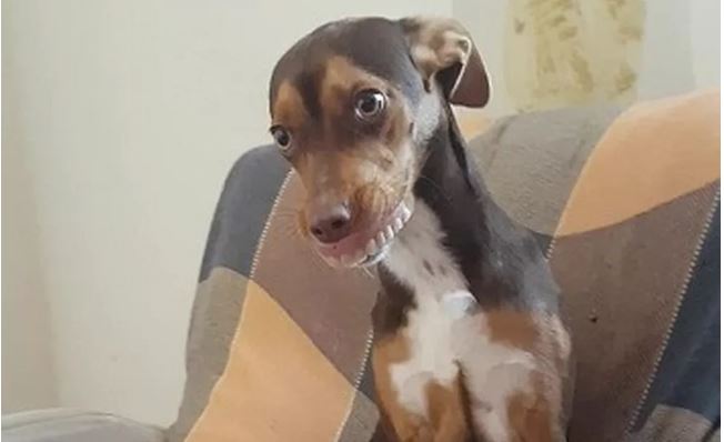 Cadela 'furta' dentadura, e foto faz sucesso nas redes sociais