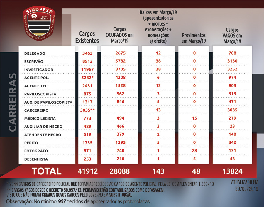 Com 13.824 cargos vagos, defasagem na Polícia Civil segue crescendo