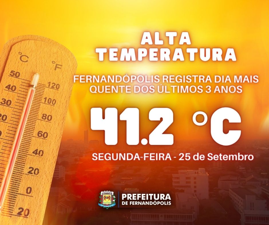 Com 41.2º C, Fernandópolis registra novo recorde de temperatura