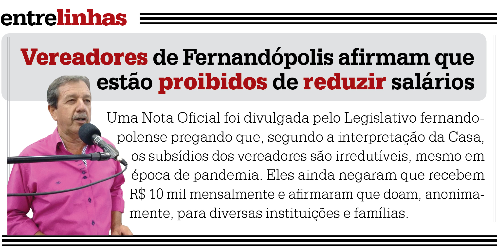 Vereadores de Fernandópolis afirmam que não podem reduzir salários